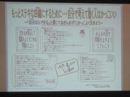 そして、誰もが安心して過ごせる学校にするために、新しくなった『かっこいいしきん』の紹介がありました。6年生が子どもたちを代表して、より分かりやすく、より大切なことを選んで作成してくれました。
