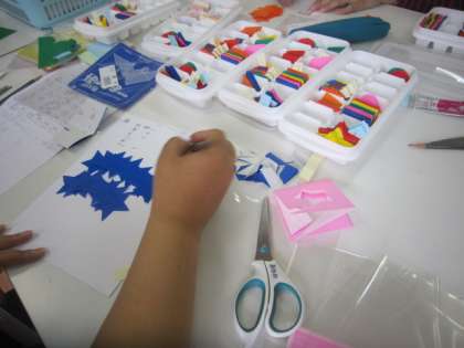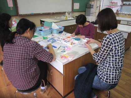 本日も英語ボランティアのみなさんに教材作りをしていただきました。星形・ハート形をはじめとする6種類の形を作っていただきました。しかも今日は驚くほどの枚数でした。10時から始まり12時終了の予定だったのですが,時間を延長して作業をしていただきました。本当にありがとうございました。