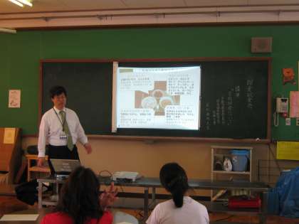 今日は,給食試食会でした。保護者京都市教育委員会の体育健康教育室から指導主事をお招きして,「学校給食について」の講演を聞きました。「学校給食」についての目的や,献立作成について,手作りのおいしさのことなど丁寧に時にはユーモアも交えてお話いただき,参加された保護者の方々も熱心に聞いておられました。給食は栄養十分なので,朝食や夕食は適当でよいという考え方は間違いで,給食も一日の食事の3分の1と考えてほしい,また,学校給食の好きなわけ第1位は,「みんなで一緒に食べること」という結果から,忙しくなっている家庭での生活も見直すことができたらと考えさせられました。