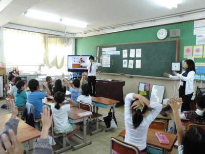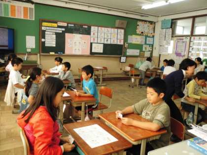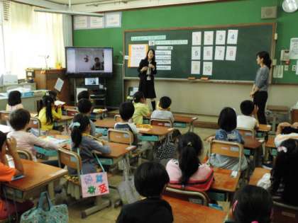 1の2は「リースをつくろう」でゲームを通して10までの数の言い方を知りました。1、2年生とも英語ボランティアさんにお世話になりました。