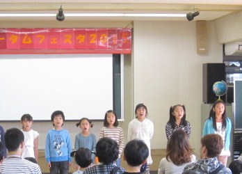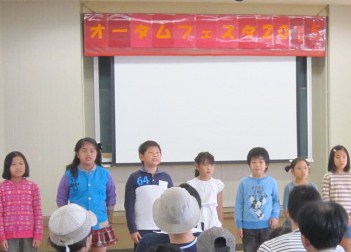 国際・音楽の子どもたちは、歌を2曲披露してくれました。ピアノの伴奏に合わせて、みんなで声を合わせて、はっきりとした歌声を聞かせてくれました。英語の歌詞も、上手に歌い、大きな拍手をいただきました。