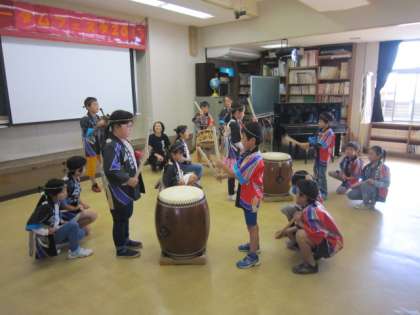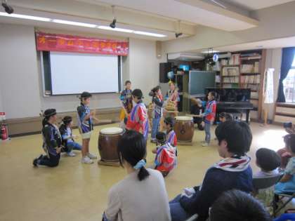 和太鼓部の子どもたちは、今回3年生が中心に構成されていました。2年生と5年生から書く1名が参加してリードをしてくれましたが、3年生にとっては、自分たちが中心であったため、いつも以上の緊張があったと思います。最後は、無事に演奏でき、ホッとしていました。