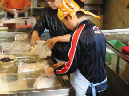 商品の陳列や,商品の魚を袋に入れてお客様に売る等,初めての体験でした。