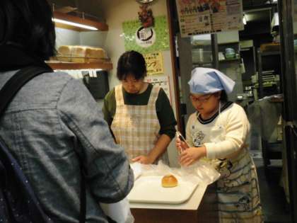パン屋さんでは,パンをつぶさないようにはさんで袋に入れていました。