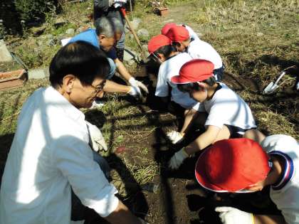 子どもたちは見つけるたびに「見つけた!」「こっちにもある!」と楽しそうに収穫をしていました。収穫したさつまいもは今後、みんなでおいしくしていただきます。また、それも楽しみです。