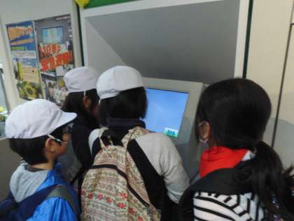 こちらは110番通報のシュミレーションの様子です。真剣な表情で電話にこたえています。