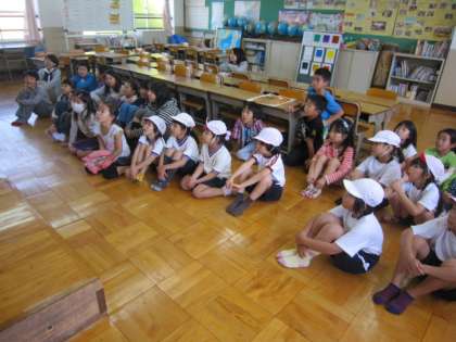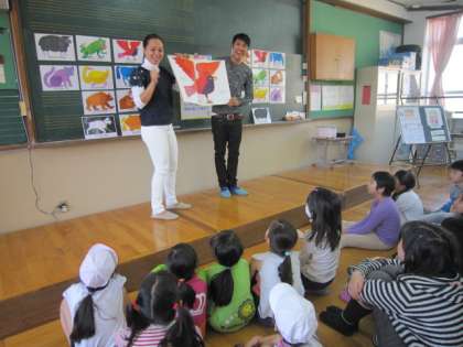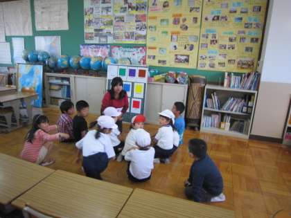 今日から、「わくわくイングリッシュ」が始まりました。これは、中間休みに、子どもたちが外国人のネイティブな発音を聞きながらゲームを通して英語で会話をする時間です。今日は、さっそく30人ほどが集まって、色や動物のカードを使って楽しく会話していました。これから月に2回程度、国際ルームで行います。楽しみながら少しでも英語に親しむ機会になればと思います。