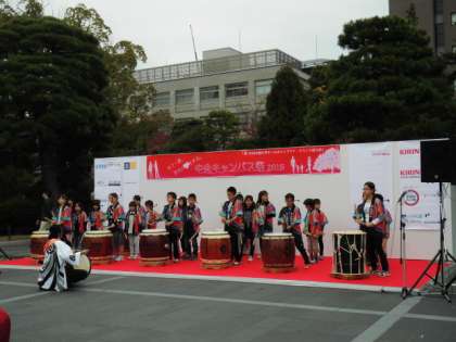 京大キャンパスに和太鼓も鳴り響く!