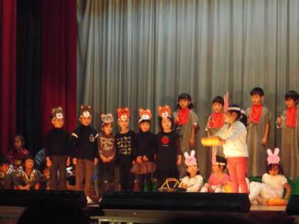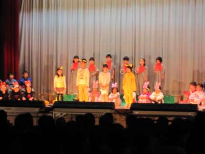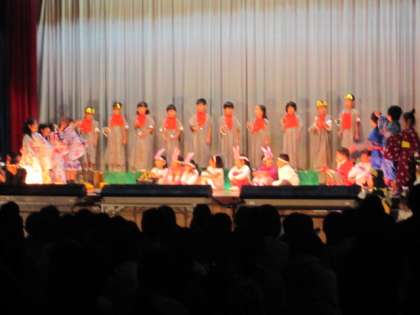わくわくどきどきの初めての学習発表会が終わりました。1年生は,「おばけじぞう」の劇に力を合わせて取り組みました。ゆっくり大きな声でせりふを言ったり,動きを工夫したりして,昔話の世界をみんなで楽しく表現しました。
