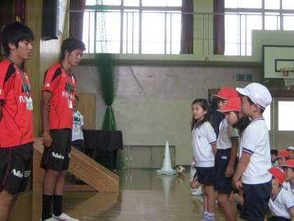 最後に,選手の方々に質問をしました。「どうしたらうまくなりますか?」や,「何歳からサッカーを始めましたか?」など,選手の話を真剣に聞いている子どもたちの姿勢はとても素晴らしかったです。児童代表のお礼の言葉も,はっきり相手に伝わるような声の大きさで伝えられました。とても堂々として素晴らしかったです。