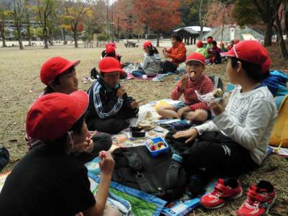 宝ヶ池に移動して,みんなでお弁当を食べました。