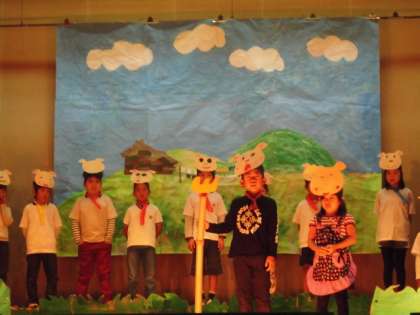2年生は、劇「やさいばたけのぱぴぷぺぽ」を発表しました。たくさんのお客さんに声を届けようと、「一人一人がはっきりみんなに届く声で」を意識して、それぞれの役になりきり頑張りました。