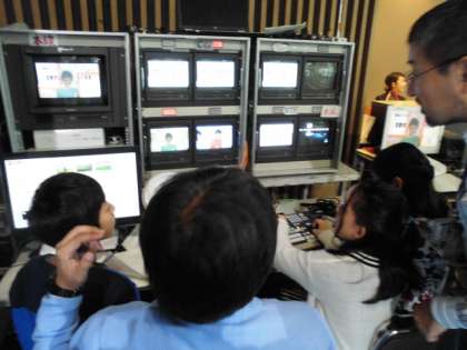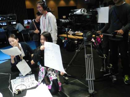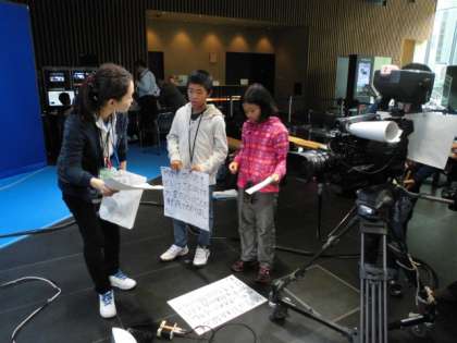そしてまずはリハーサルです。プログラム・ディレクターの指示をもとに撮影は進んでいきます。一通り撮影が終わると,課題や改善点が出てきました。