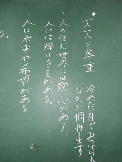 「水平社宣言」の最後の一文「人の世に熱あれ、人間に光あれ」に込められた思いをみんなで考えました。