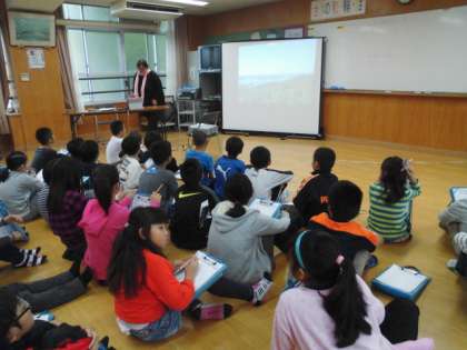 今日は,フィンランド出身の方に来ていただき,フィンランドでの高齢者との関わりについて教えていただきました。フィンランドの街並みを写真で見て,子どもたちから「きれい!」という声が上がり,興味を持っている様子でした。