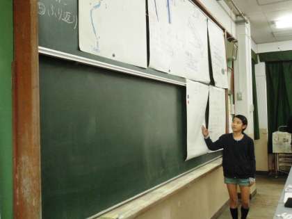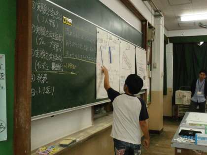 そして最後には,班の代表者が全体に向けて自分たちが考えた実験方法を発表しました。
