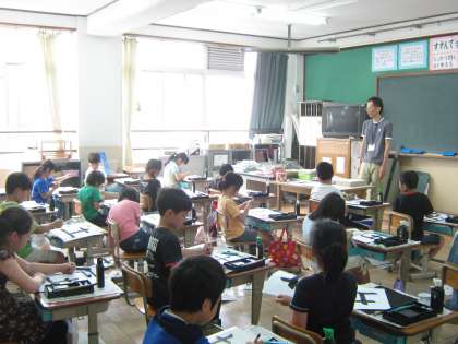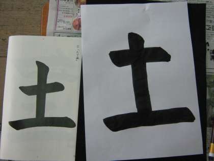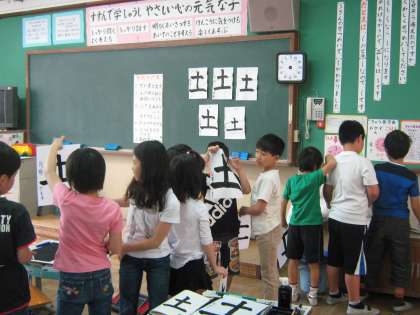 書写の時間,子どもたちは一筆一筆に魂を込めて文字を書いています。「土」という字は縦画,横画が入っており,子どもたちも繊細かつ大胆に筆を進めています。始筆,送筆,終筆に気をつけて書いている子どもたち,これからどんな素晴らしい文字を書いていくのでしょうか。