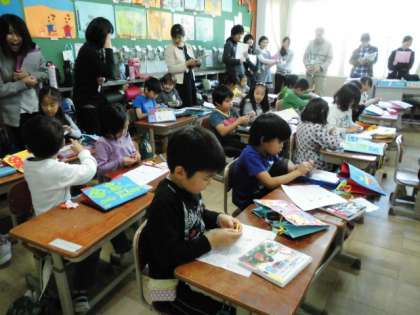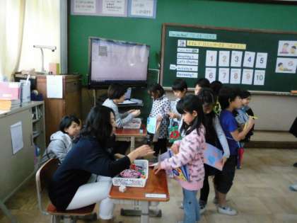 ボランティアさんから、もらったキャンディの中には、実はもっと細かい飾りが包んでありました。やり取りが終わって、そっとキャンディの中をあけて、喜ぶ子どもたちでした。このキャンディも保護者ボランティアさんが、何度も集まって作ってくださったものなのです。