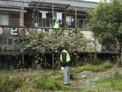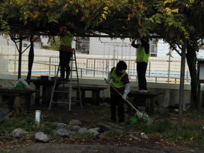 寒い中、雨が止んだと、ビオトープ委員会のみなさんが作業に来てくださいました。