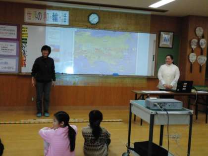 とてもたくさんのスライドで、フィリピンの位置や国旗の説明から景色、食べ物、生き物、交通の様子、言葉などを教えてくださいました。
