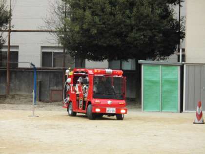 運動場では、もちつき、炊き出し訓練の豚汁の提供のほか、起震車による地震体験、子ども用消防車体験、子ども防衣着装体験なども行われています。