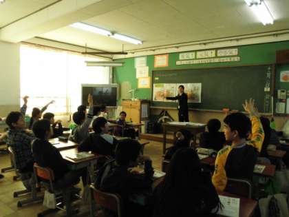 左京南支部の小学校の先生方が参観される中、子どもたちは、楽しそうに授業に参加していました。
