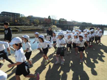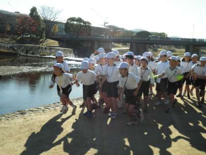 2年生がスタートしたころには、先にスタートした6年生が折り返して戻ってきていました。