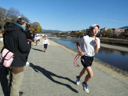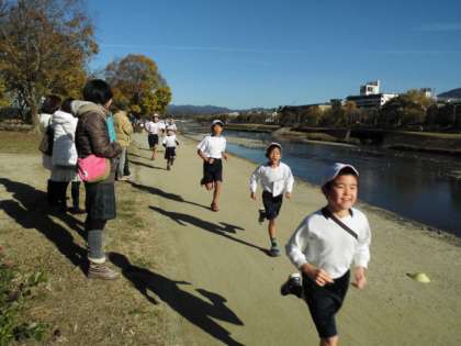 中には、「がんばれ〜!」という声援の前だけ、スピードがあがったりする場面も見られましたが、それぞれn子どもが、本当によく頑張りました。いろいろな学年の子どもたちが入り混ざり、自分のペースで走る、素晴らしい光景でした。