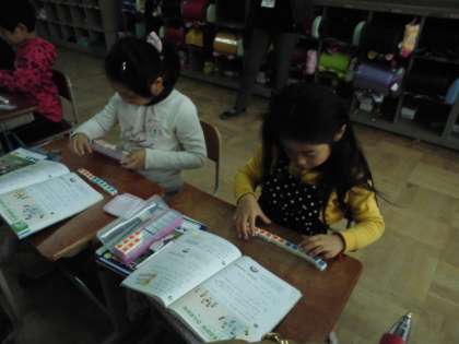 もう、たしざんもひきざんもならったので、今日は、文章題を見て「たすのかひくのか」を考える学習でした。もちろん「わけ」も話します。