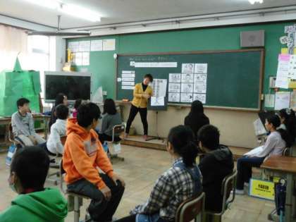 子どもたちは、将来の夢について、英語をつかって話していました。