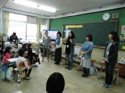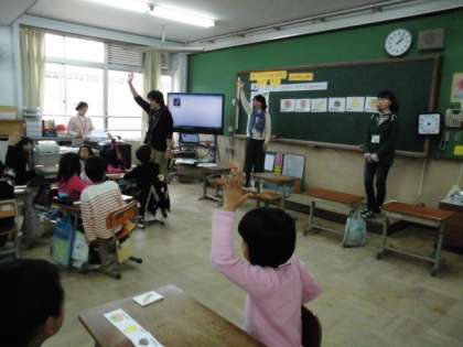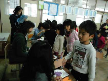 今日も、また、たくさんの英語ボランティアの皆さんにお世話になって授業を行まいました。ケーキをつくるのに必要な果物をもらうという学習でした。