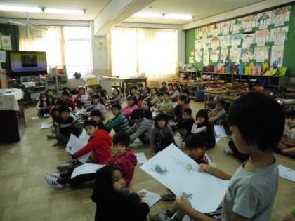 ふれあい集会後半は、教室にかえって、また、異学年で、意見を出し合い、話し合いました。体育館での全校集会では、お話を途中で終わっています。