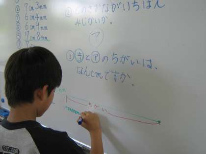 長さの加法や減法の計算の仕方を理解し,計算しているところです。ノート作りも気をつけて書くようにしています。