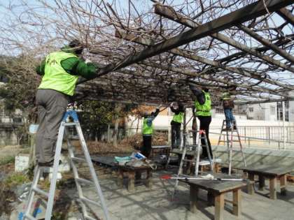 今回も、たくさんの方が来てくださり、フジの枝の剪定をしてくださいました。前回からもずっとしてくださっています。かなり枝と枝の間隔があいてきて、すっきりとしました。満開のフジの花が咲くでしょう。楽しみです。