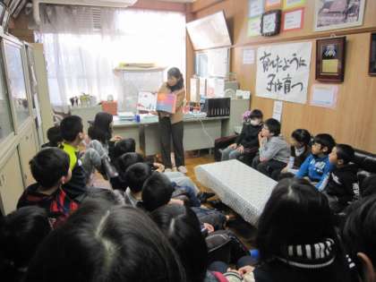 今週は、読書週間でした。読書週間の最終日は、子どもたちが楽しみにしている教職員による読聞かせ「読聞かせバザール」です。自分の聞きたいお話の部屋に子どもたちが移動します。校長室もお客さんでいっぱいでした。
