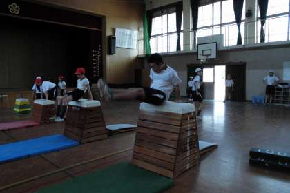 跳び箱から120cmも踏切台を離して跳べる子もいます。