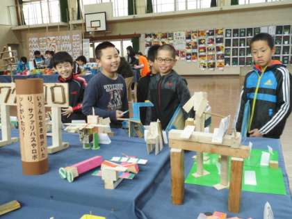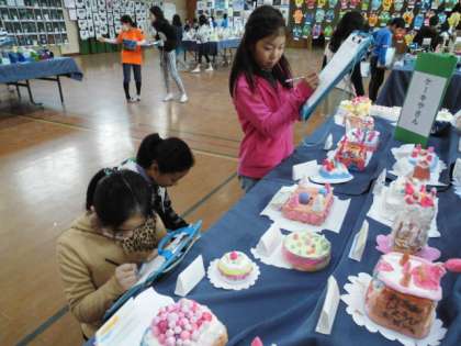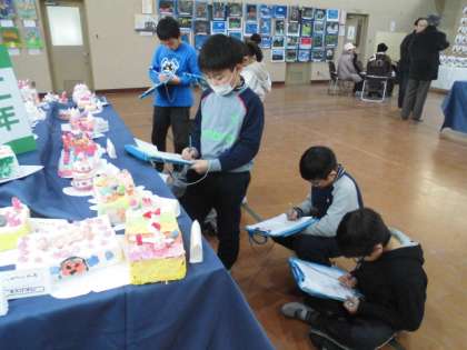 図工展では,どの作品を鑑賞プリントに書こうか迷いながら,子どもたちは鑑賞していました。他学年の作品を見て,「すごいなぁ」「上手やなぁ」と関心しながら見回っている様子でした。