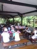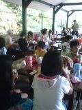 トンビよけのため屋根のある方で食べています。