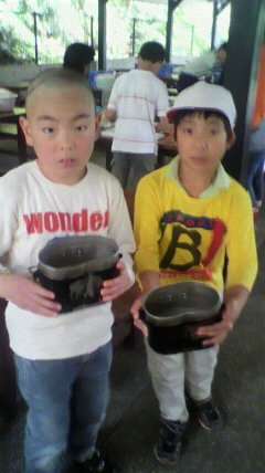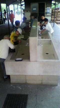 飯ごうでご飯を炊きます。一人ひとりが,責任を持って,米の水加減はもちろん,後始末までします。