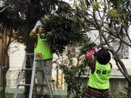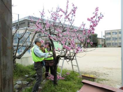 早速、桃の木の剪定、そして、ビワの木へと・・・。
