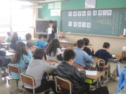 今週は,新年度に入って初めての参観・懇談会があります。今日は,高学年の日でした。5年生は,2クラスとも国語の学習でした。漢字の成り立ちの学習で,音を表す部分を探し,読み方を考えました。積極的に発表できていました。