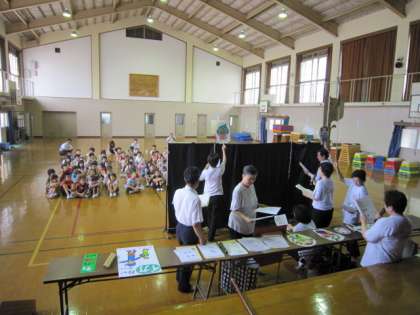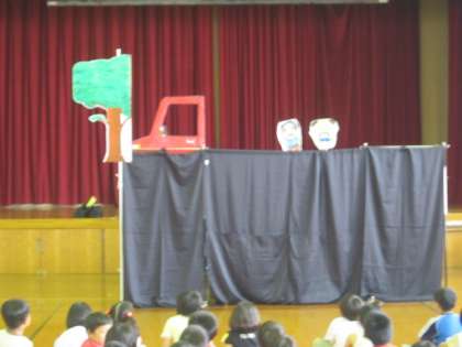平安レディーズの方々の紙芝居を通じて,声かけ事案(巧みに,子どもたちに声をかけて,車上に引きずり込んで連れ出そうとする事案)の恐ろしさなどについて,学習をしました。