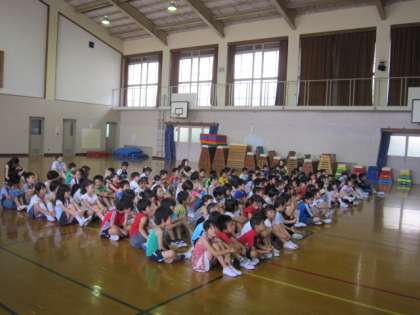 2校時は,体育館で,第1,2学年の防犯教室でした。