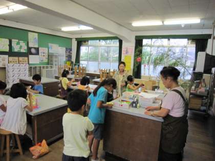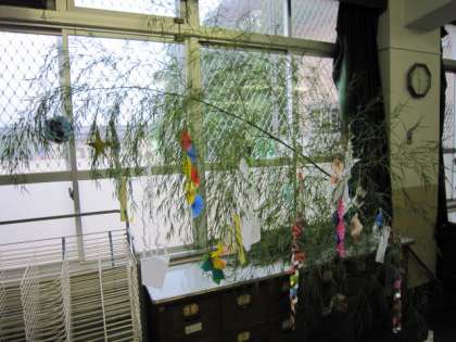 毎年恒例の,七夕かざりを作る取組です。色紙を使っていろいろな飾りの作り方を教えていただきました。