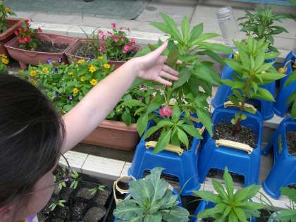 「先生!私のホウセンカの花が咲いた」と,とてもうれしそうに知らせてくれました。子どもたちが育てているホウセンカとオクラの中で,一番はじめに咲いた花です。栽培活動の中で一番うれしい瞬間です。