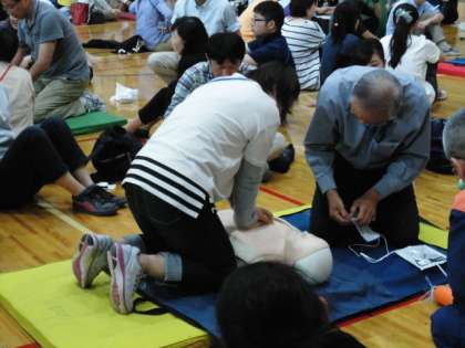 いさというときに、落ち着いて対応できるように実技指導を受けました。