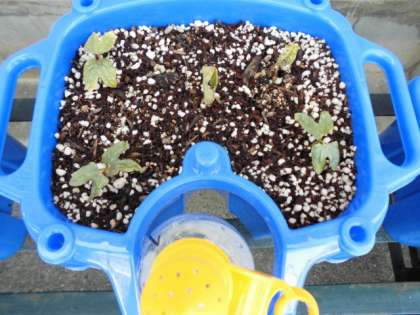 そのおかげで,すくすくとあさがおも成長し,たくさんの芽が出ています。