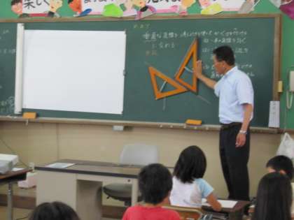 昨日は,直線及び垂直の意味について知らせ,4年生なりに文で捉えさせ,ノートに考え表現し,意味を脳裏に焼き付かせるという知識理解の授業でした。