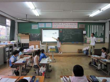 第3校時は,算数科の授業です。ICT機器を用いて,視覚に訴え,帰納的な考えをする場を仕組み,教師は子どもたちとともに授業を創造していきます。