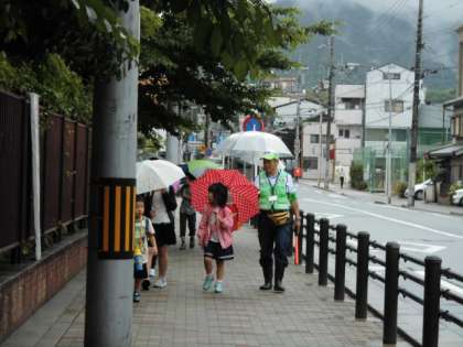 その中を、子どもたちは元気にお家の方や見守る隊の方と登校しました。